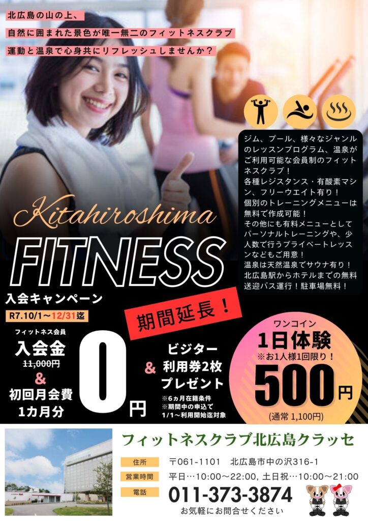 フィットネスクラブでは現在実施中の入会キャンペーンにつきまして、ご好評につき12月末迄期間を延長いたします!