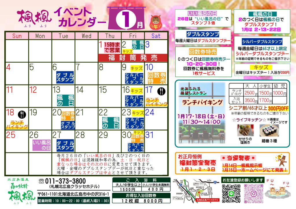 1月「楓楓イベントカレンダー」「テントサウナ」のご案内
