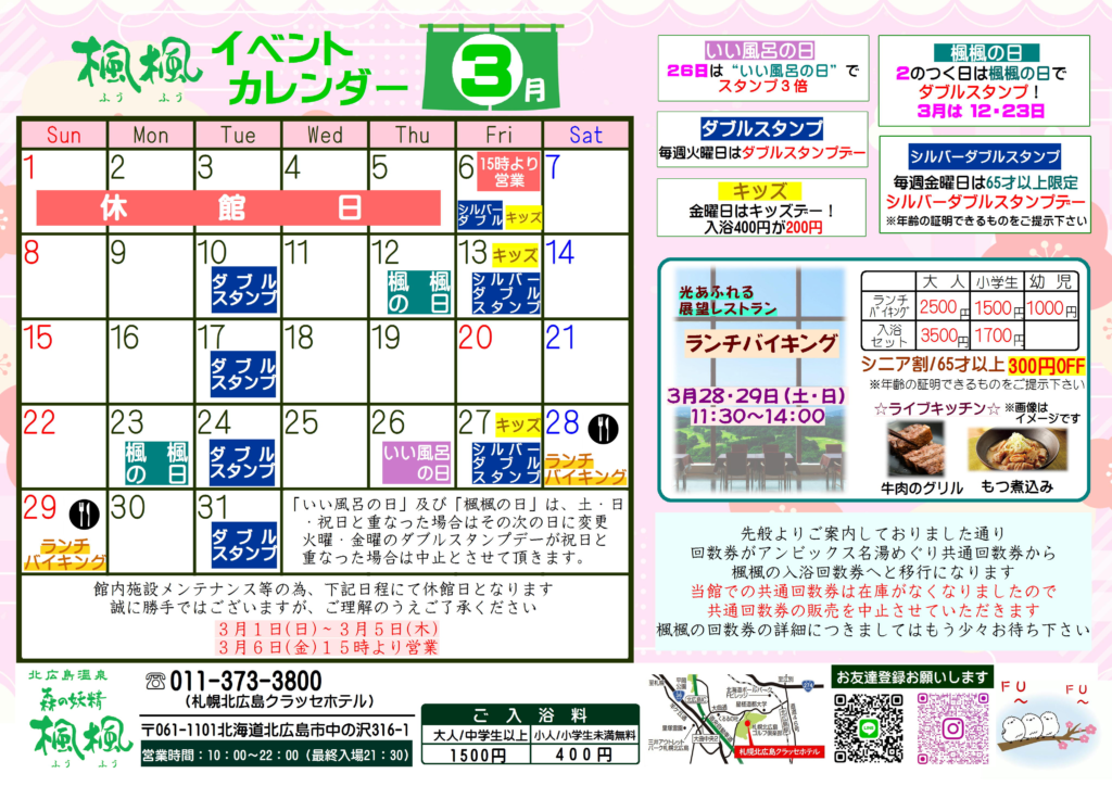 3月の楓楓イベントカレンダー