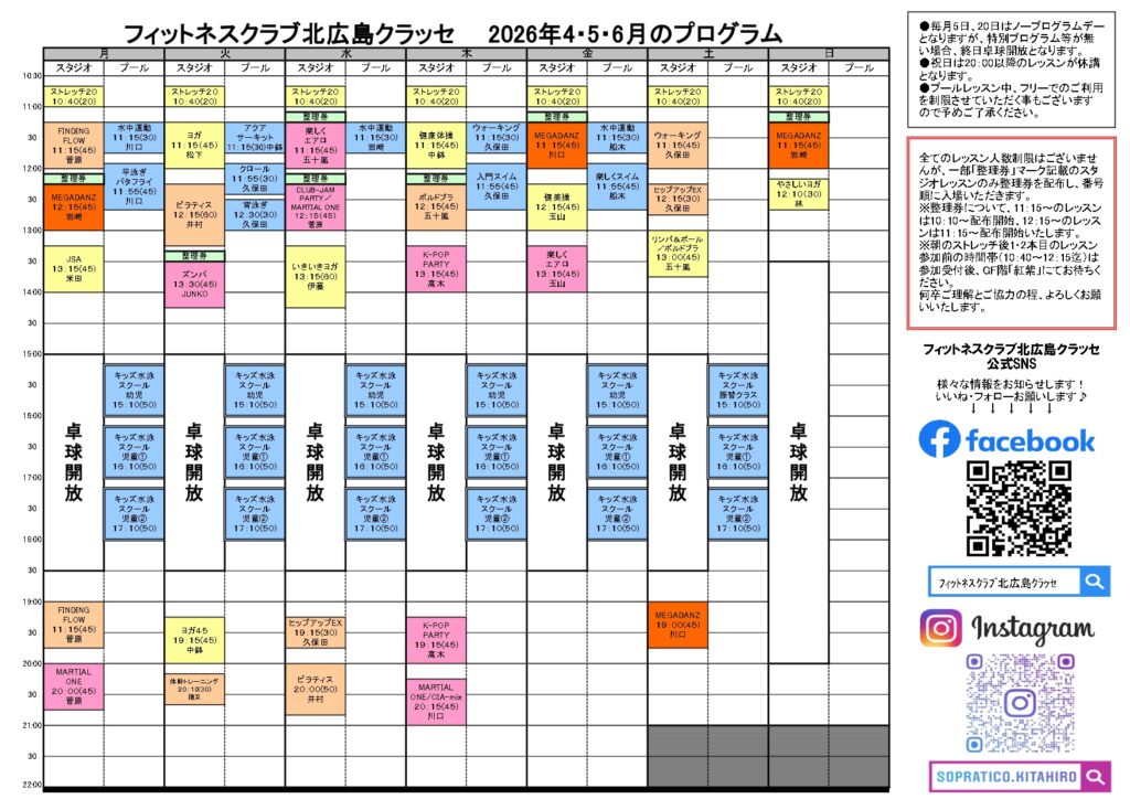 2026年4月・5月・6月プログラム