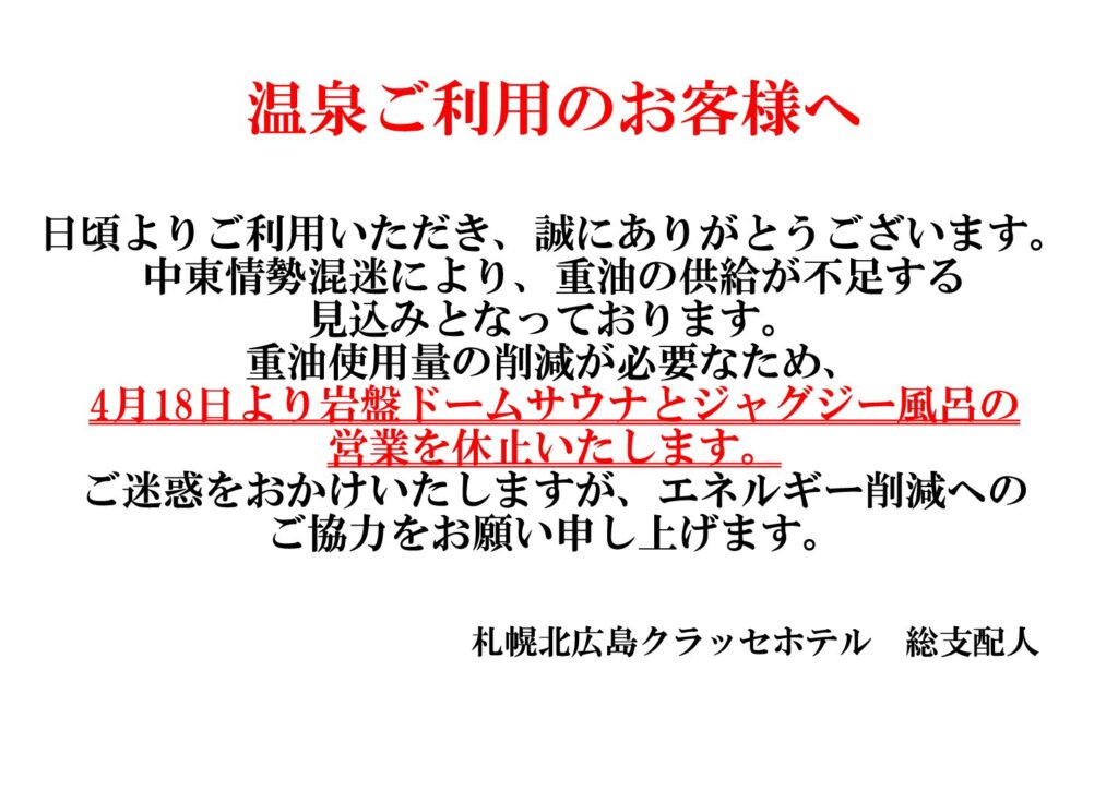 【楓楓温泉】の一部温泉休止について